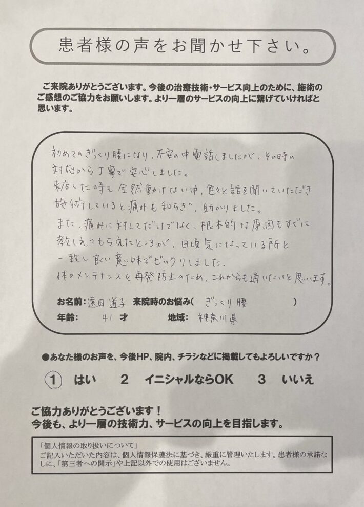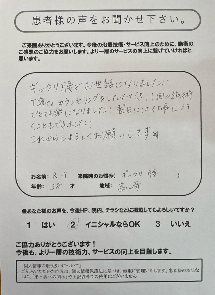 ギックリ腰でお世話になりました!!